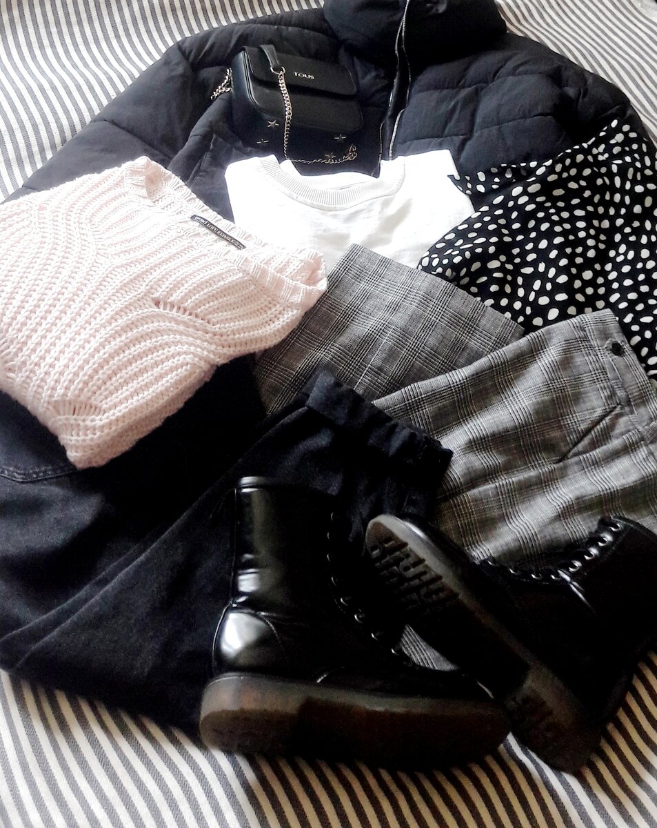 №3: Объемная куртка, платье в горошек, грубые ботинки