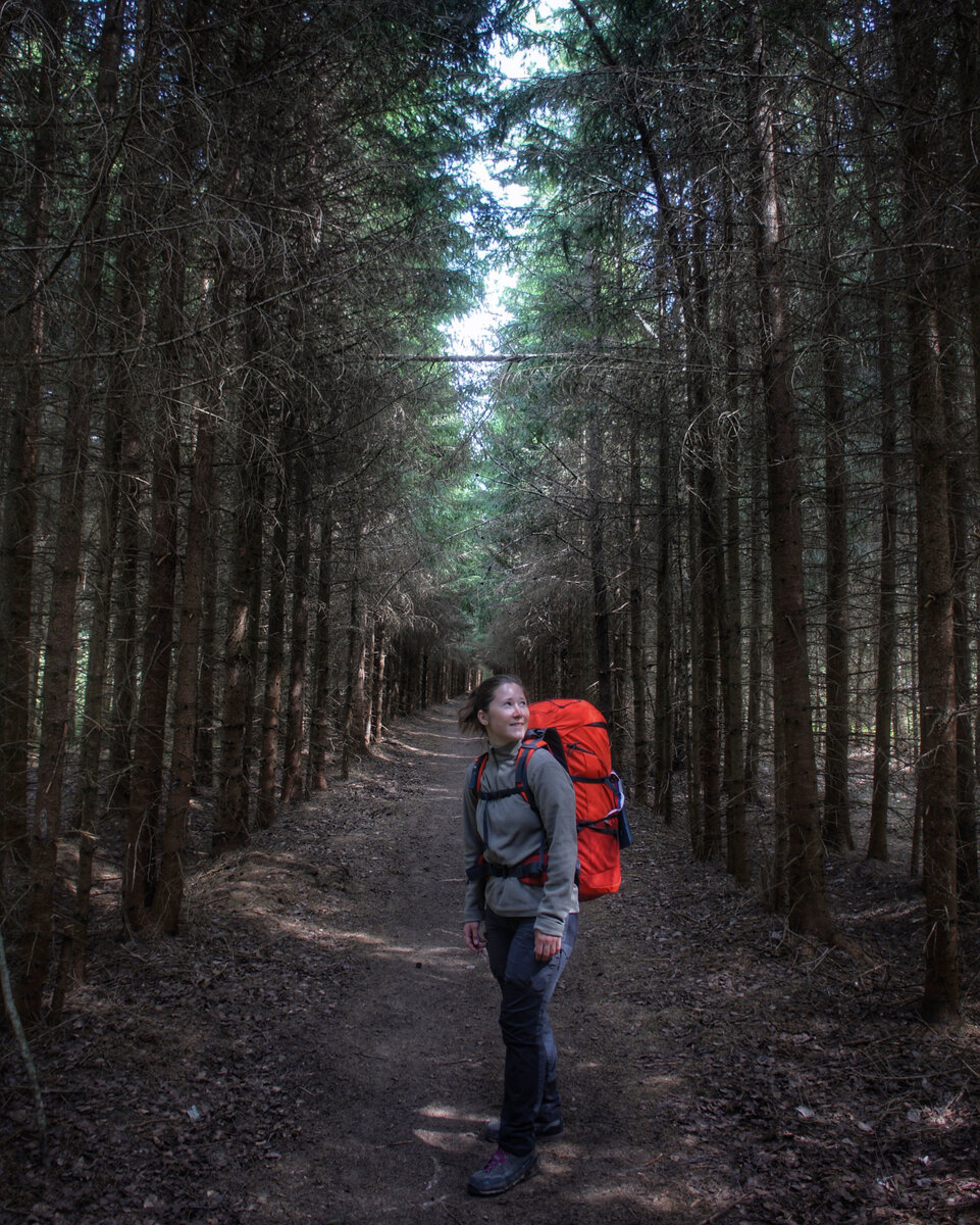 Не учтено: налобный фонарик (на севере весной и летом без него можно обойтись), треккинговые палки, дождевик и тент (доверились прогнозу). Так как у меня были еда, газ и посуда, палатку нес другой человек (вес: 2,9 кг*). Одета была в походные штаны, футболку, флиску (во второй день она отправилась в рюкзак), треккинговые ботинки.