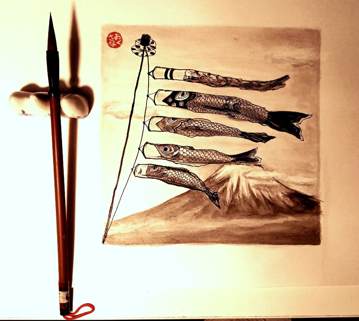 "...Дорога все еще не кончалась, хотя океан уже стал проглядывал сквозь верхушки придорожных деревьев. Вот резкий поворот налево, деревья отступили назад и внезапно, в небе я увидела летящих рыб. Они были огромные, яркие, живые! Их тела упруго извивались, хлестко преодолевая напор встречного ветра. Эти невероятные рыбы неслись по небу на огромной скорости, преодолевая порывы бурных потоков ветра, при этом оставаясь на месте. Ровно там, где их установил хозяин большого японского дома с серо-голубой черепицей на крыше. Это были Коинобори, японские традиционные карпы-флаги. Эти флаги сделаны из ткани, они сшиты в форме трубы. Порывы ветра наполняют эту трубу объемом, заставляя ее жить и двигаться вместе с ветром. Весной, в Японии коинобори устанавливают только те семьи, в которых растут мальчики. Карп-кои, это не просто рыба, это- символ. Символ стойкости, мужества, силы, способности преодолеть любые препятствия на своем пути. Я вспомнила древнюю китайскую легенду , которая гласит: "Каждый карп может подняться к Вратам Дракона вверх по реке, где будет превращен в дракона"...