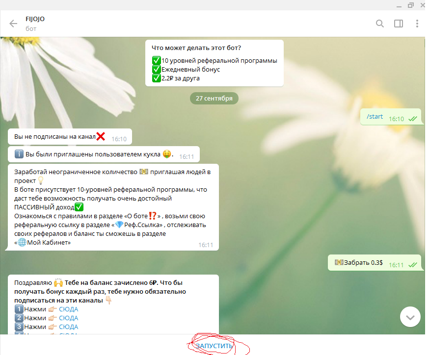Всем привет сегодня покажу нового телеграмм бота в котором можно заработать и так начнём 1 Первое что нужно сделать это перейти в бота https://t.me/FIJOJO_bot?start=r0776232695 Далее просто забираем бонусы каждый день Заработай неограниченное количество 💵 приглашая людей в проект💡 В боте присутствует 10-уровней реферальной программы, что даст тебе возможность получать очень достойный ПАССИВНЫЙ доход✅ Минимальный вывод денег от 90 рублей выводятся на Яндекс деньги и QIWI кошелёк. Вот выплаты с данного бота! Такие выплаты могут быть и у вас если вы будете активным пользователем