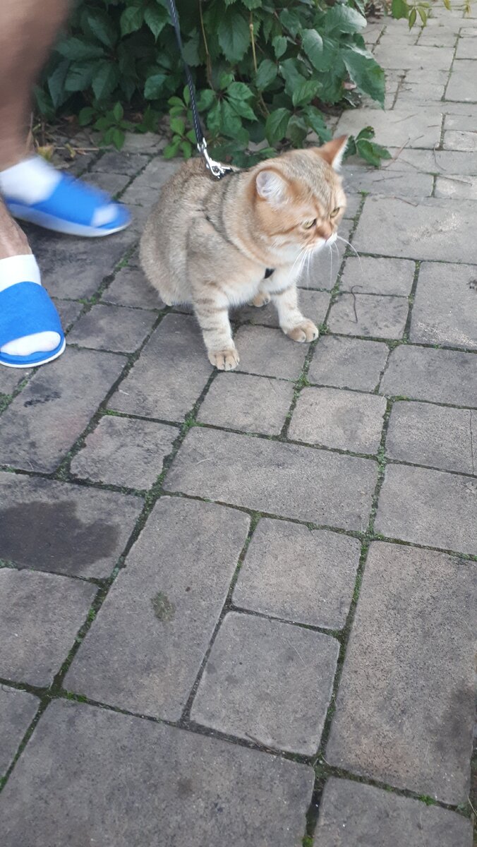 После трапезы Ашера попытались выгулять. Дать, наконец, коту волю, так сказать. Чтобы ощутил запах свободы, чтобы душа развернулась! Для этого кота вероломно отнесли на несколько метров в сторону от беседки и – отпустили!