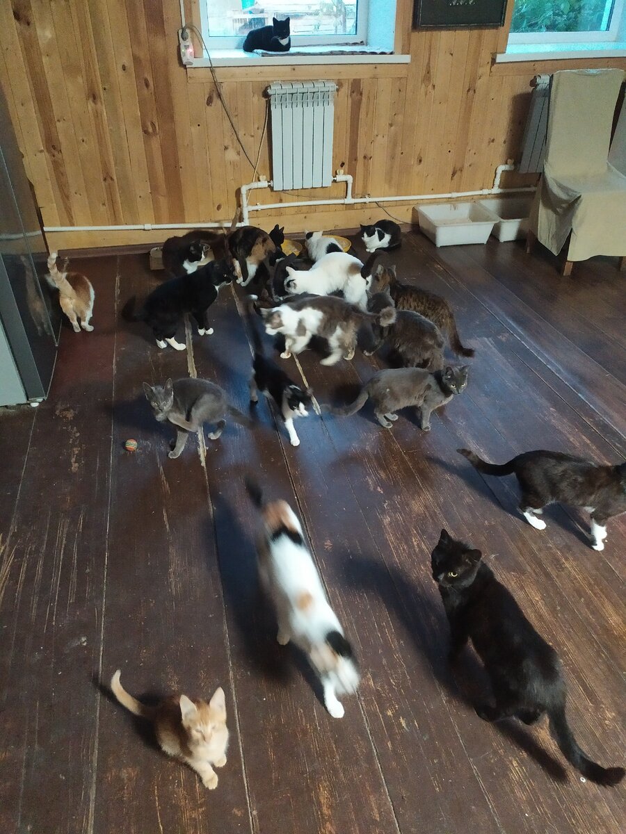 Возможно кто-то брезгливо поморщится, но они все живут с нами в доме. Наш дом большой, почти везде стоят лотки, на всех удобных местах лежат матрасики. И пусть наше утро начинается с уборки, мойки мисок, кормёжки, но также и с обнимашек и целовашек. 👩❤️👨 🐈