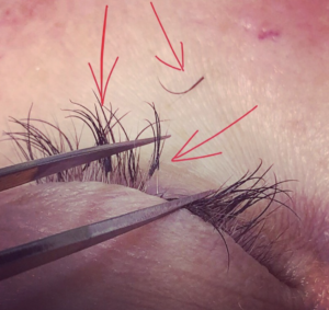 Склейки образуются в результате грубого нарушения технологии работы мастера. Чаще всего это такие нарушения как некачественное разделение ресниц или нарушение технологии работы с клеем.