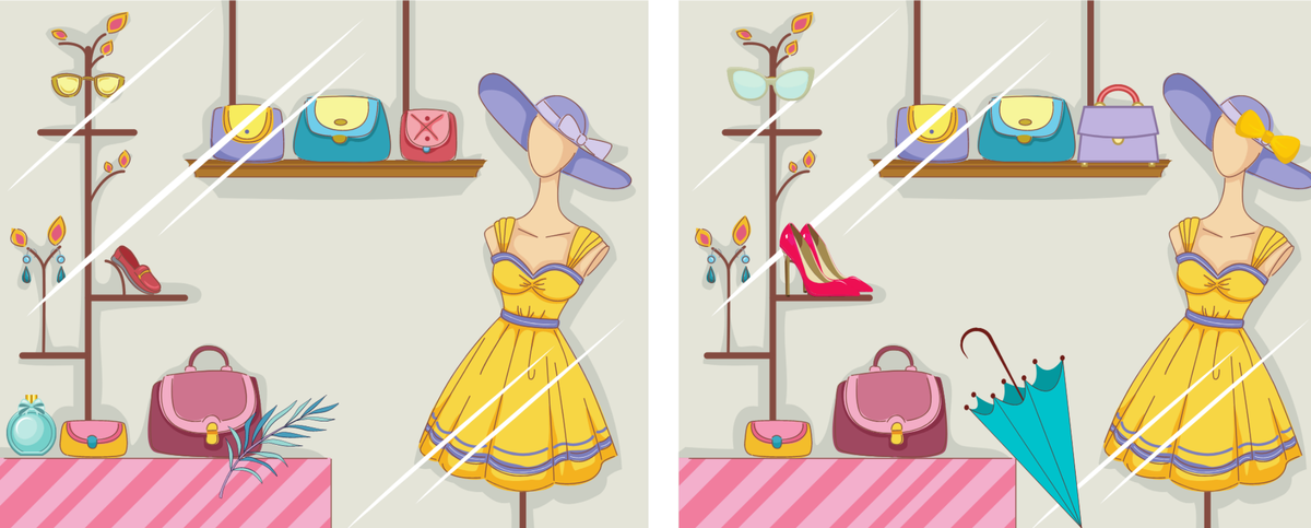 Витрины как-будто одинаковые, но внимательные барышни сразу заметят разницу. А вы сможете за одну минуту увидеть, чем отличаются эти