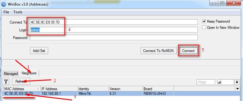 После установки и запуска заходим во вкладку «Neighbors» и нажимаем по кнопке «Refresh» чуть ниже. Далее в списке вы увидите свой аппарат – выбираем его вводим в качестве логина «admin» и нажимаем «Connect».