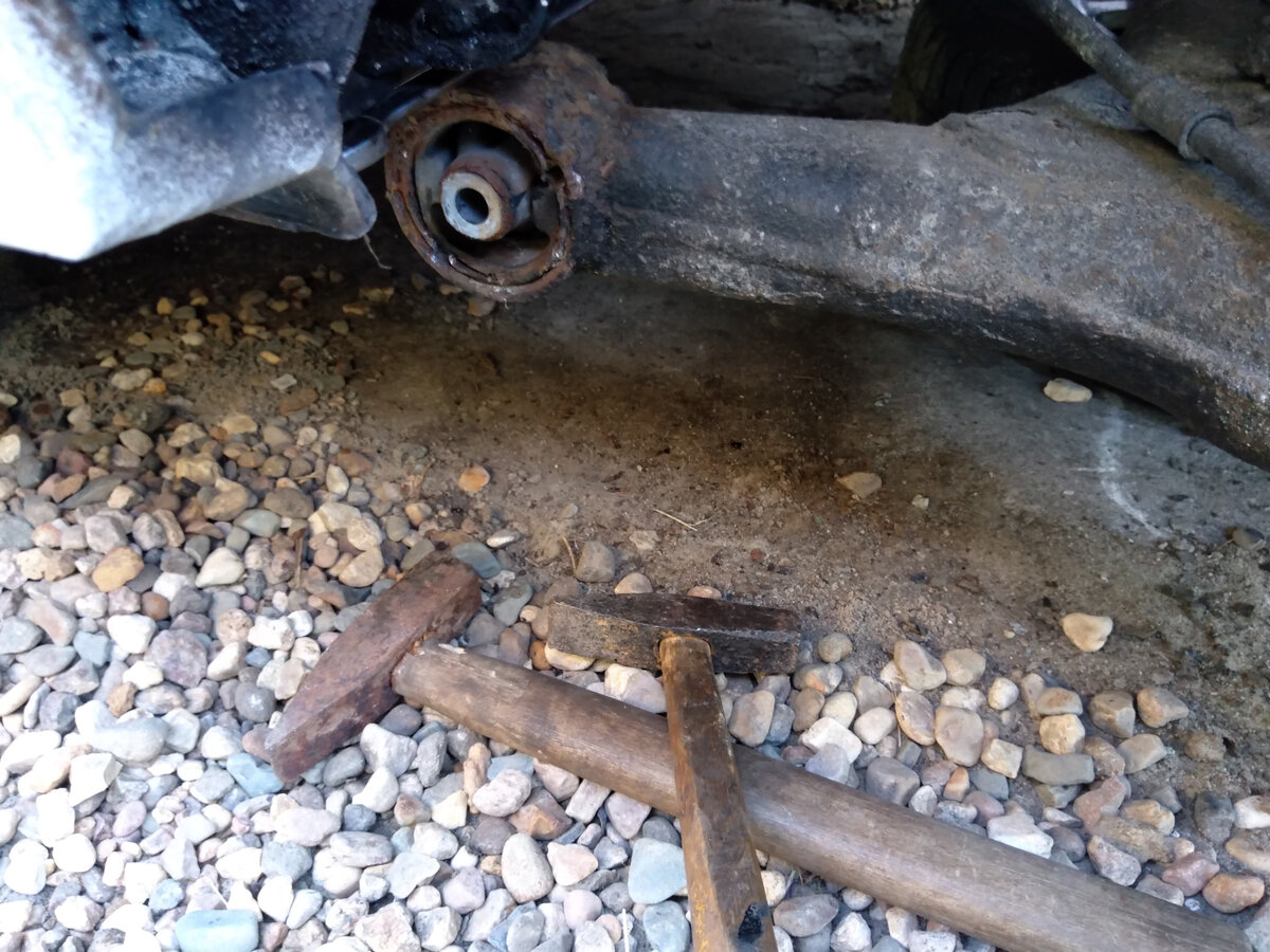 Самый простой способ, но и в то же время самый трудоемкий, это зубило и молоток. Если сайлентблок закис основательно, то выпрессовывать его, таким способом, можно бесконечно долго. Бить нужно во внешнюю обойму сайлентблока.