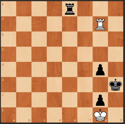 Предлагаю решить интересную шахматную задачу. Положение белых кажется безнадежным. У черных две пешки, причем черный король встав на g3 будет защищен от шахов со стороны белой ладьи. Черные же грозят дать шах ладьей на е1 и поставить ферзя на g1. Но ход белых, ничья.