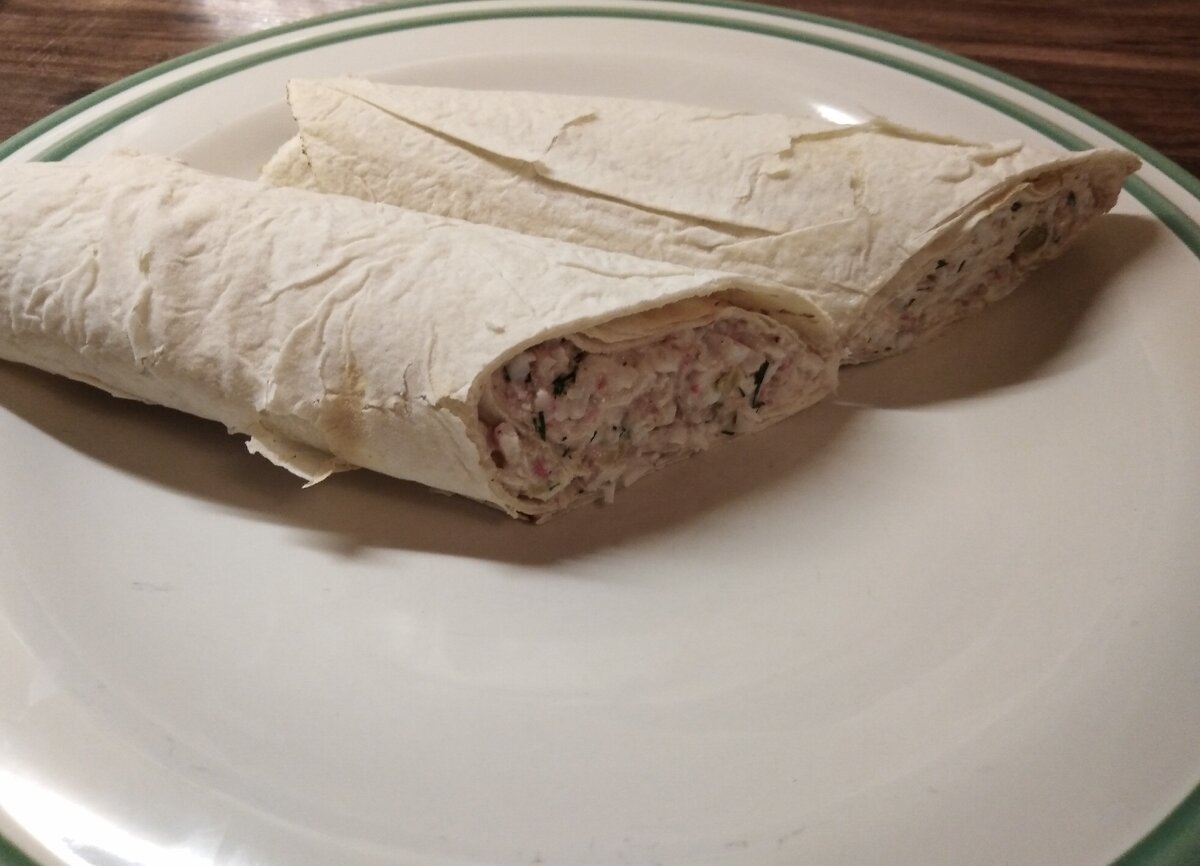 Шаурма. Но совсем другая - с крабовыми палочками, зеленым горошком и рисом. Ниже ингредиентов указано на 6 штук. Можно растянуть и на восемь, если эконом или диетвариант, но если хочется, чтобы было вкусно, делаем на шесть.