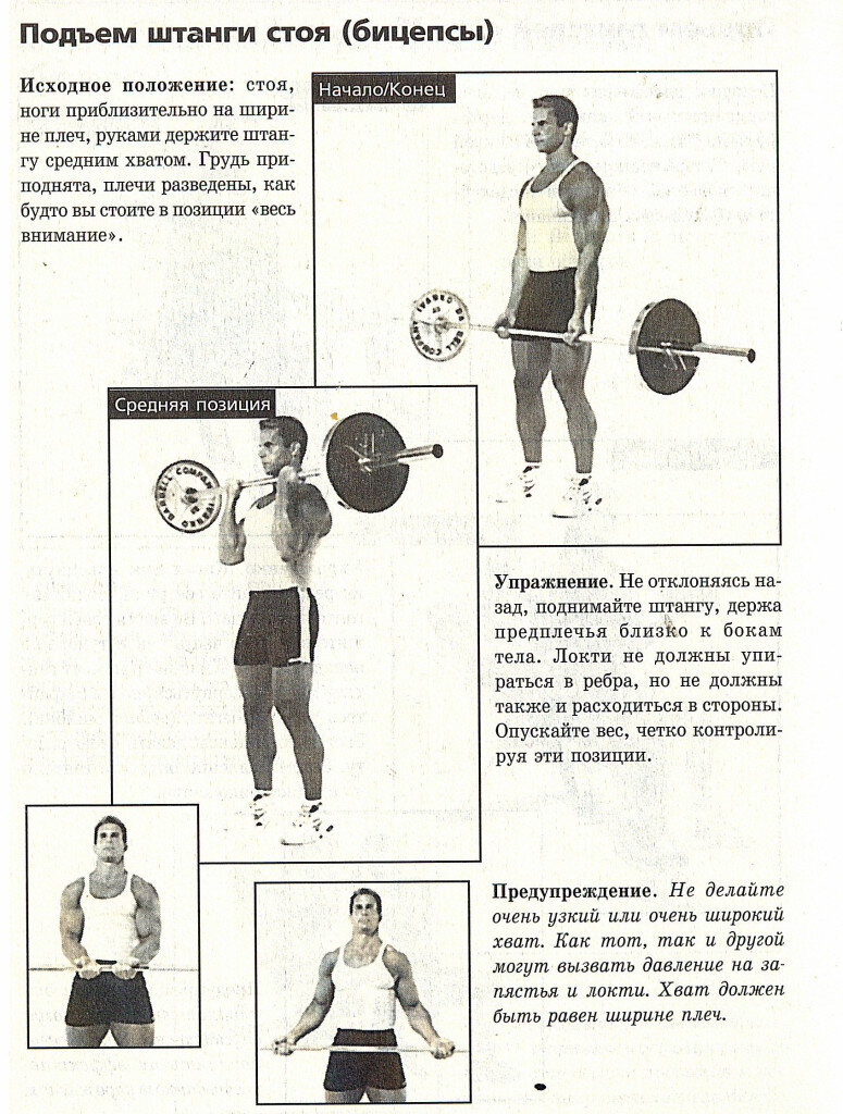 Жим штанги стоя — суперпробивное упражнение, для накачки объёмов рук, главное не перебарщивать с весами, подбирая их так, чтобы вас хватило на выполнение 10-12 повторений при каждом подходе. Рекомендую на пике