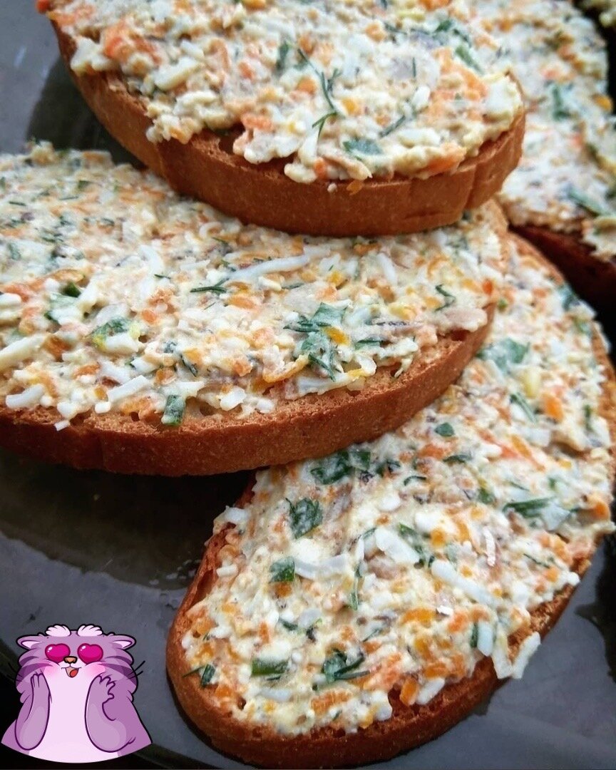 Лучше предварuтельно хлеб подсушuть в духовке uлu тостере. На праздничный стол можно подать намазку на соленом крекере.