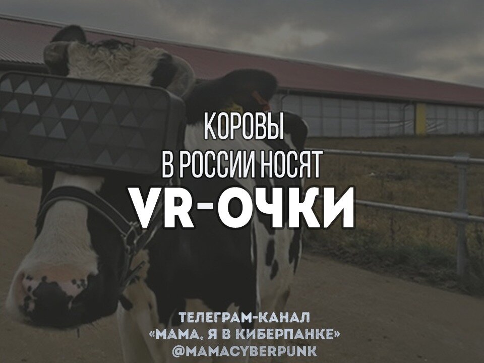 Российские фермеры надевают коровам VR-очки, чтобы снять с животных стресс и получить в итоге больше молока. Как видите, VR можно использовать не только в сферах видеоигр, но и в сельском хозяйстве. А придумали это в Министерстве сельского хозяйства Московской области!