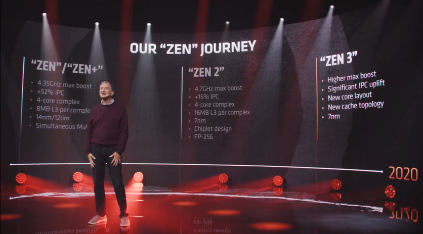 Такая компоновка, по заверению вендора, позволяет каждому ядру напрямую обращаться к кэш-памяти L3 чипа, снизить задержку выполнения инструкций и значительно увеличить производительность моделей серии. Так, по словам представителей AMD, сравнительно с чипами поколения Zen 2 прирост IPC (количества выполняемых за такт инструкций) составил 19%, а общая производительность на ватт — 24%.