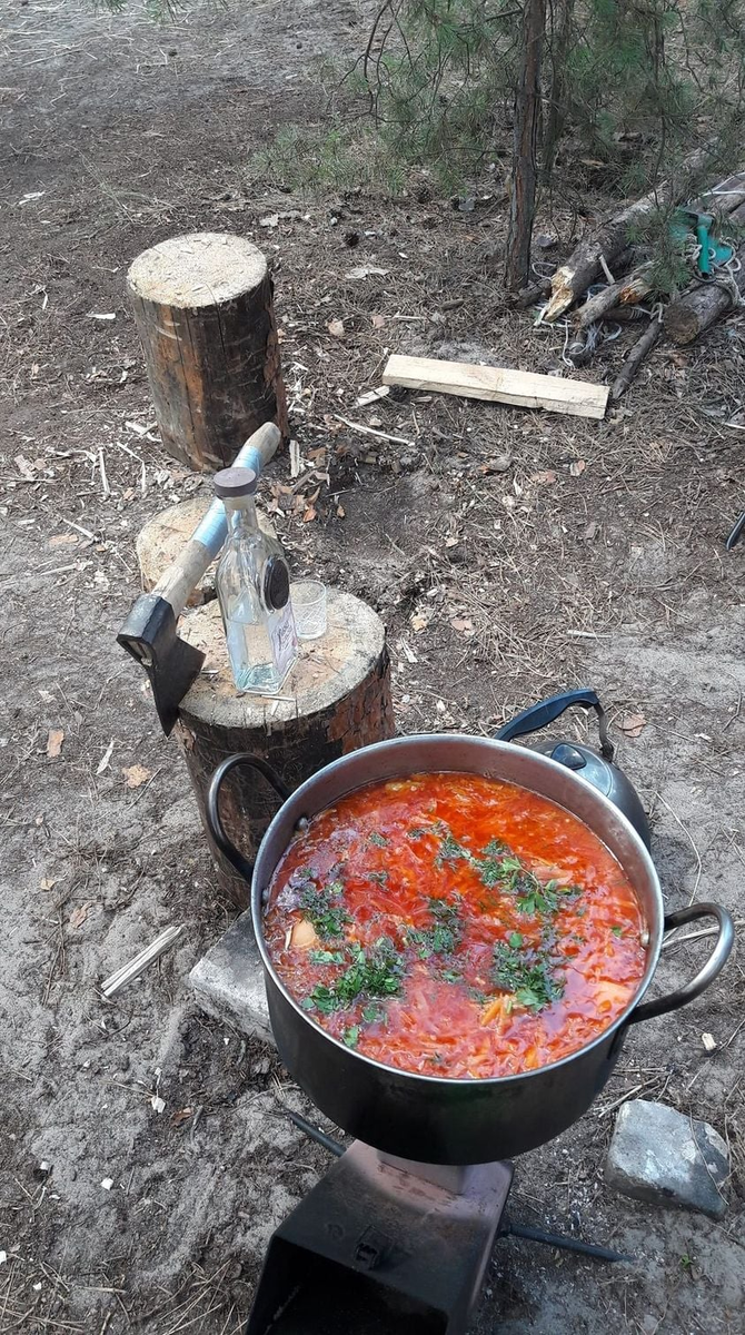Ровно через 20 минут аромат над поляной поплывёт такой, какого мы годами не можем получить в собственной квартире. Это будет аромат настоящего борща, такой же чистый и свежий как воздух вокруг.