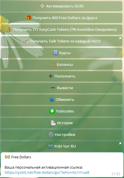 Чтобы начать процесс активации в боте @FastExRobot нажимаем на кнопку «Активировать DLRS». Бот в ответ выдаст вам персональную ссылку для активации, переходим по ней.