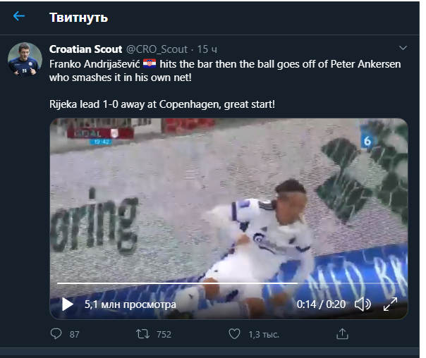 Начнем с смешного автогола, на матче Копенгагена и Риеки. Виктор Нельссон в центре поля срубил соперника, но матч был продолжен. Франко Андрияшевич взял мяч и побежал вперед. Хорвата встречал Рагнар Сигурдссон, Нельссон догонял. Думали атака закончена?Нет: Сигурдссон срубил партнера, а игрок «Риеки» погнал дальше. Андрияшевич перебросил вратаря, и мяч попал в перекладину. Казалось бы все потеряно, но набегавший Петер Анкерсен не успел среагировать на отскок – мяч рикошетом от него влетел в ворота. Дальше новость поинтереснее, безумнейшая серия пенальти на матче Милан-Риу Аве Матч «Риу Аве» – «Милан» внезапно стал самым интересным в последнем раунде квалификации Лиги Европы. У команд был всего один матч, чтобы решить, кто в этом сезоне участвует в еврокубках, а кто сосредоточится на домашних турнирах. Повезло на 120-й минуте – хорват Тони Боревкович сыграл рукой в своей штрафной. Очевидный пенальти, защитник «Риу Аве» отставил поднятую руку, а мяч попал в нее. Боревкович получил красну