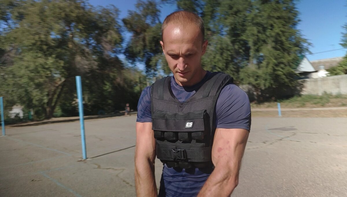 Отдых между подходами 15-20 секунд, время в которое снимал жилет утяжелитель и делал фото.