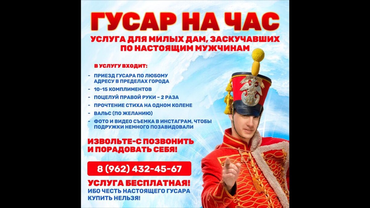 Вчера в пабликах нашего города появились интересные объявления для заскучавших дам об услугах «Гусара на час».