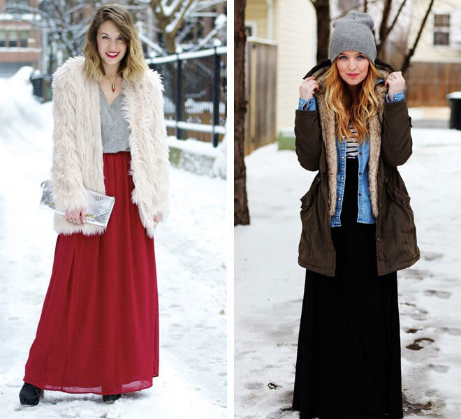 Всем привет! Сегодня поговорим о модных длинных юбках, а точнее о том, как правильно вписать их в различные зимние образы.