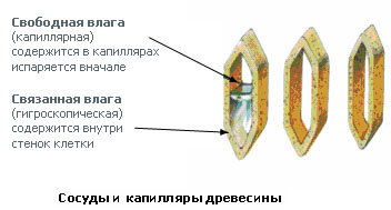 Влага в древесине находится в двух состояниях:
