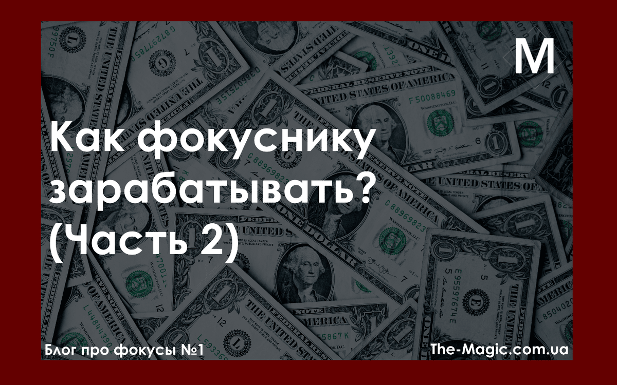 У этой статьи есть 1 часть: https://www.the-magic.com.ua/2020/09/28/kak-fokusniku-zarabatyvat-chast-1/