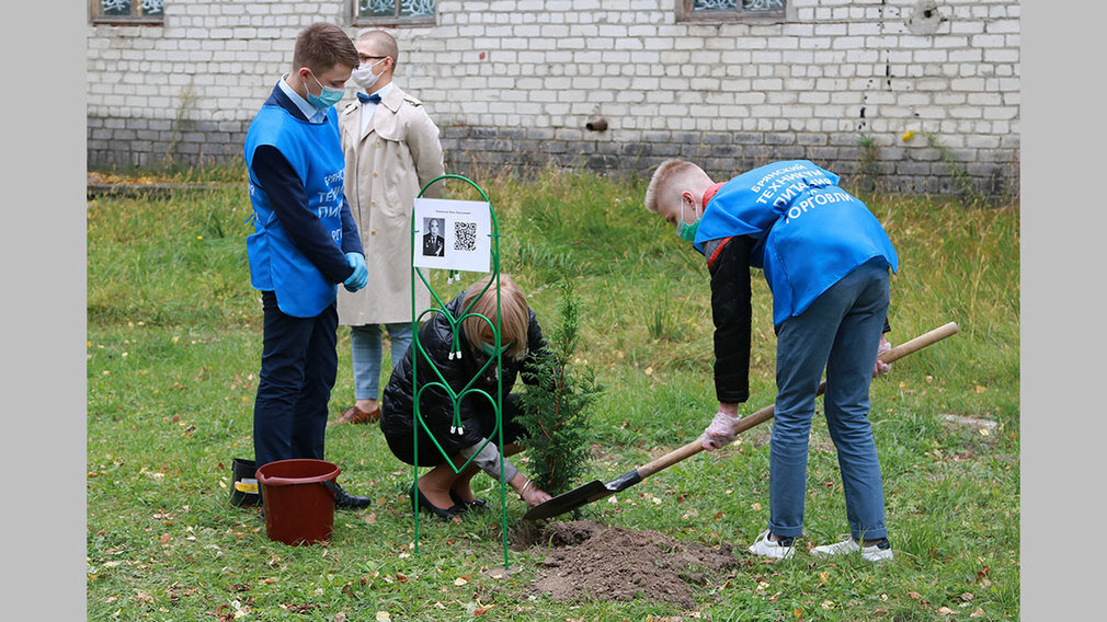 Первые шесть метровых туй высадили в память о руководителях и работниках техникума. Возле каждого будущего дерева установили табличку с указанием имён руководителей и преподавателей техникума. Рядом с каждым именем - QR-код, который можно считать при помощи смартфона, а затем узнать биографию ветерана педагогического труда.