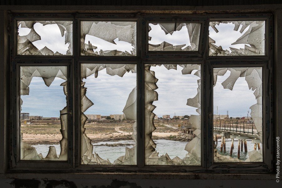 Прохожу на пирс. Про его устройство расскажу отдельно. А пока зайдем в здание на платформе и осмотримся. Ряд окон с выбитыми стеклами произвели на меня неизгладимое впечатление. Их хотелось снимать, снимать и снимать. Можно было снимать все три окна, каждое окно в отдельности или вид из каждой ячейки рамы со старой советской расстекловкой.