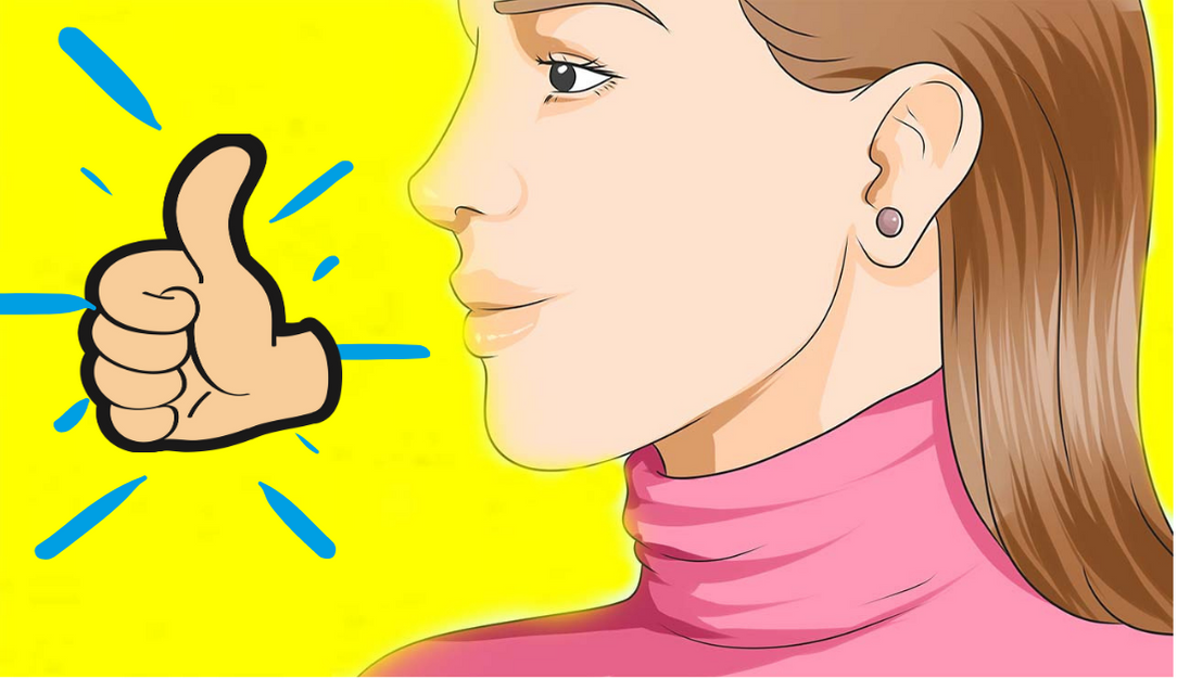 - Таким образом палец мягко погружаем под челюсть, на комфортную глубину.