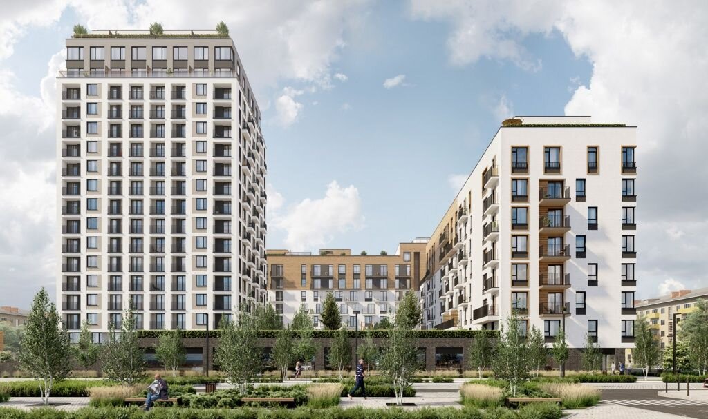 Зелёный двор-сад закрыт от машин и предназначен только для жителей. Здесь появится детская площадка, площадка для занятий спортом, зона