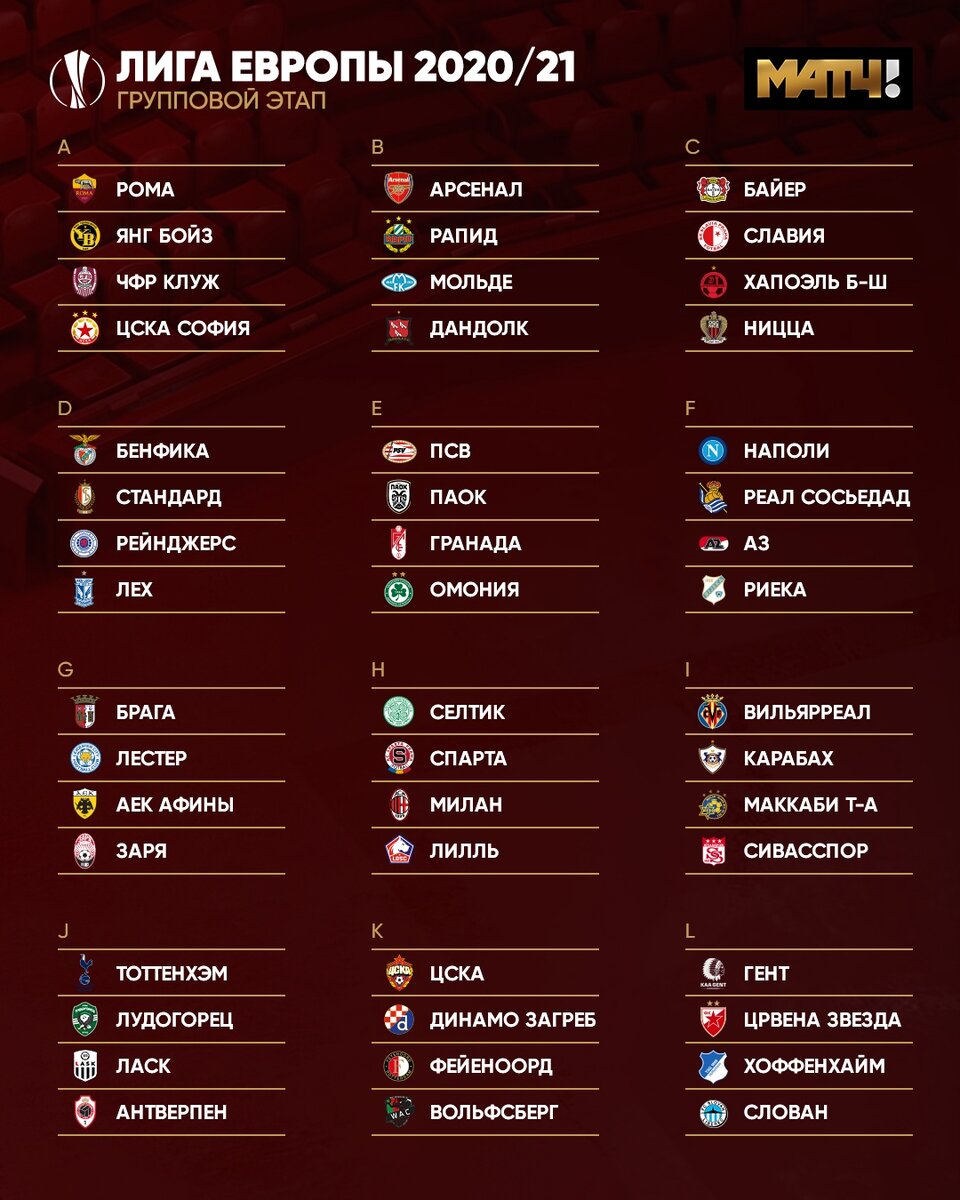 🔥Результаты жеребьёвки группового этапа Лиги Европы: