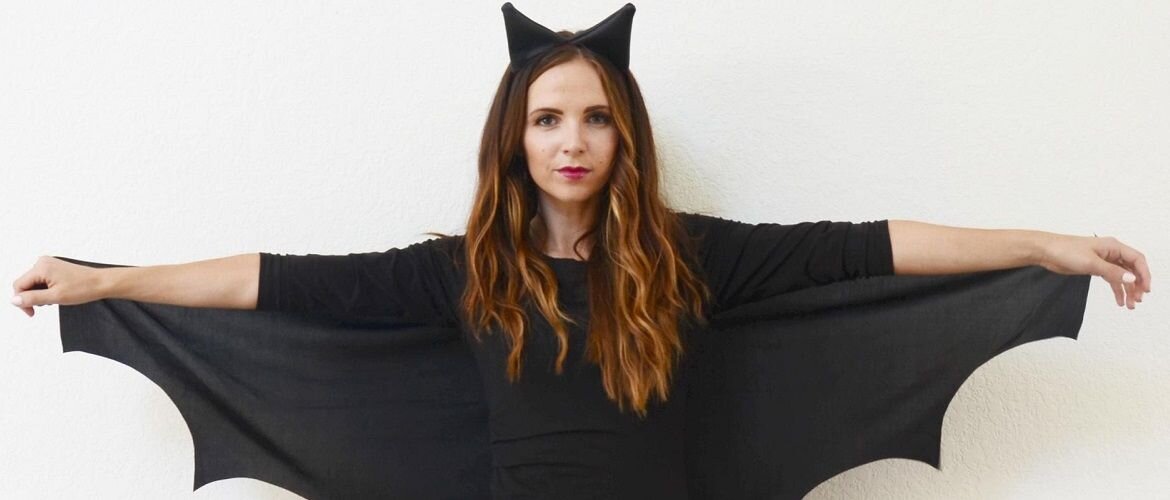 Костюм летучей мыши на Хэллоуин – самый легкий вариант образа на праздник. Во-первых, он полностью передает атмосферу Хэллоуина – мрачную и мистическую. А во-вторых – такой наряд легко сделать из подручных материалов. Достаточно надеть черную футболку и брюки, сшить крылья для костюма летучей мыши своими руками и продумать аксессуары в виде ушек или маски.