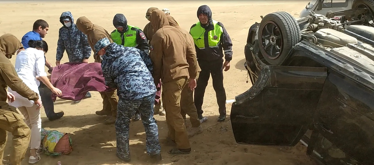 На границе Республик Дагестан и Калмыкия офицеры СОБР обнаружили перевернутый автомобиль, который, по предварительным данным, на высокой скорости вылетел с проезжей части из-за начавшейся песчаной бури. Росгвардейцы незамедлительно отправились на помощь пострадавшим.