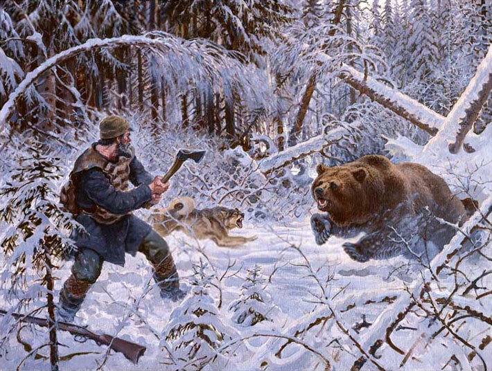 Потом началась славная медвежья охота! Медведя с грехом пополам они разбудили и вскоре вычеркнули из списков. Но один из охотников получил тяжелую травму, так хозяин тайги его немножко поломал. Охотник был без сознания и жалобно стонал…