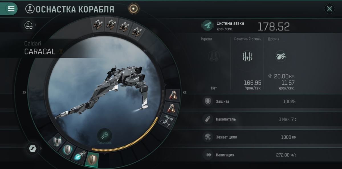 Самый оптимальный вариант оружия для Каракала это Medium скорострельная ракетная установка. Поэтому втыкаем рапидки и забываем про них.