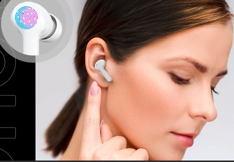- Два раза касаемся левого или правого наушника, это пауза или воспроизведение