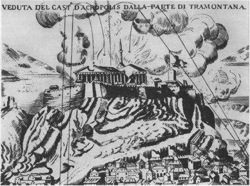 Парфенон, на тот момент более двухсот лет бывший мечетью, обстреливали безжалостно, другой возможности взять неприступное укрепление на скале, где расположился османский гарнизон, венецианские военачальники не видели.