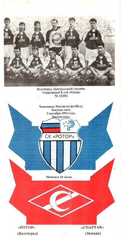 3 октября 1993 года в Волгограде состоялся матч 30-го тура чемпионата России, в котором «Ротор» принимал московский «Спартак». Хозяева поля одержали победу со счетом 1:0 – единственный гол великолепным дальним ударом забил Александр Шмарко, приведя в восторг забитый под завязку стадион.