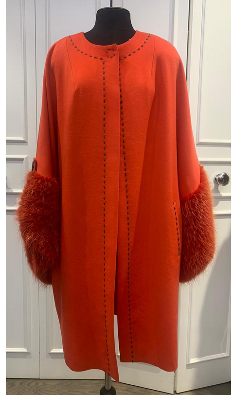 Почему-то я смотрю на это пальто, и сразу ассоциации с апельсином возникают. Очень сочный, яркий оттенок, но из плюсов данного наряда, наверное, это все. Сам он напоминает мне пальто, которые очень часто можно увидеть на взрослых солидных женщинах 50+, правда у них оттенки более мягкие, бежевые или уныло-зеленые.