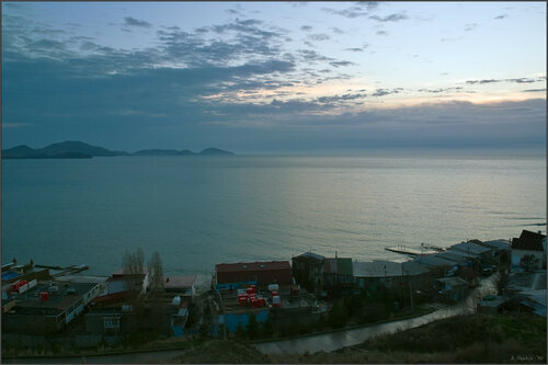 Утром восьмого января мы встали пораньше, чтобы не прозевать рассвет. В восемь утра мы были уже на восточном краю Тепсеня, откуда открывается панорама на посёлок и всю Коктебельскую бухту. Но безрезультатно – густая облачность не дала нам насладиться яркими красками. Только по редким просветам в облаках мы поняли, что солнце уже встало, и грустно поплелись по плато к дому. Во дворике мы встретились с нашим хозяином – Игорем, который с интересом порасспрашивал нас о наших похождениях. Он очень удивился, что мы так и не побывали на Кара-Даге – всё это время, каждое утро мы звонили указанному нам леснику, но он (справедливо) ссылаясь на погоду, откладывал нашу экскурсию на завтра. Вот и сегодня, глядя на тучи над заповедником, он тоже отказался идти в горы. Расстроенный Игорь очень не хотел, чтобы наши рождественские каникулы прошли без посещения столь чудного уголка крымской природы. И пообещал нам сегодня непременно организовать восхождение!