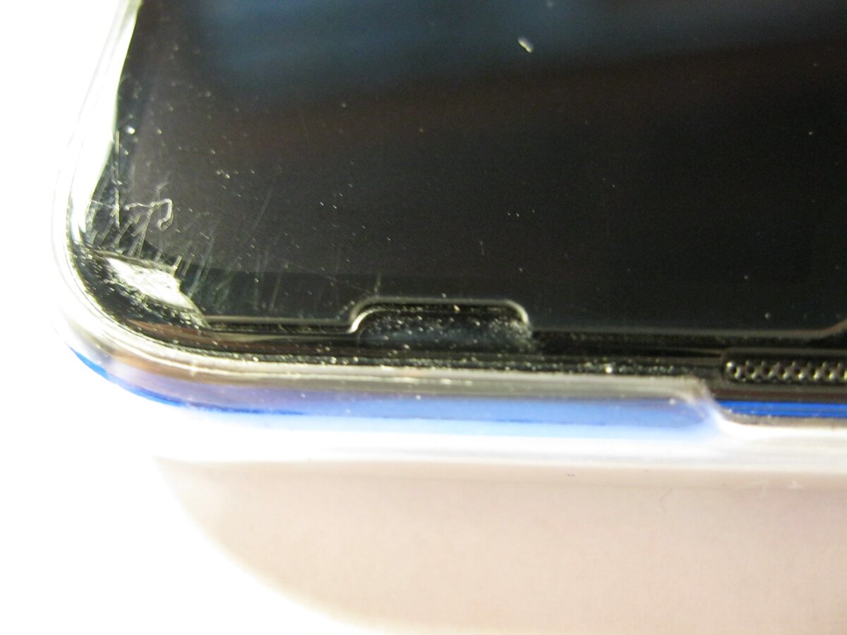 3) Совсем недавно, около 1 месяца назад, на правом уголке появился скол. При этом телефон не падал, не было физических воздействий. Но скол появился, и он достаточно острый, неприятная ситуация.