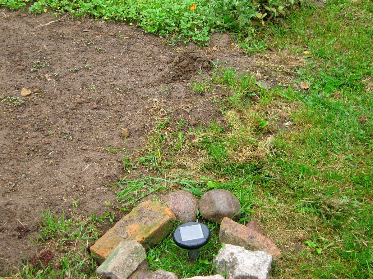И вот, в уже в конце сезона приехал на дачу и увидел, что снова все взрыто. Один экстремал обозначил свою земляную горку на расстоянии 2-х метров от отпугивающего устройства, которое издавало совсем слабый звук.