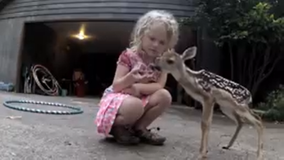 Олененок приблизился к ребенку, которая выглядела очень любопытной. Олененок наверняка заблудился в лесу и искал свою мать. Девочка протянула к оленю руку – хотела помочь ему. Родители не могли поверить в то, что видят.