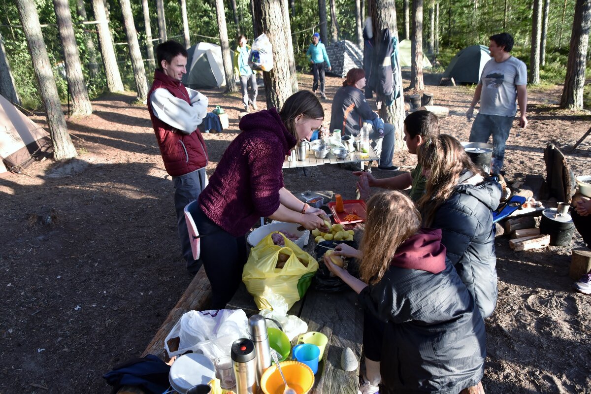 Все дни стояли на одном месте.По этому лагерь не собирали.