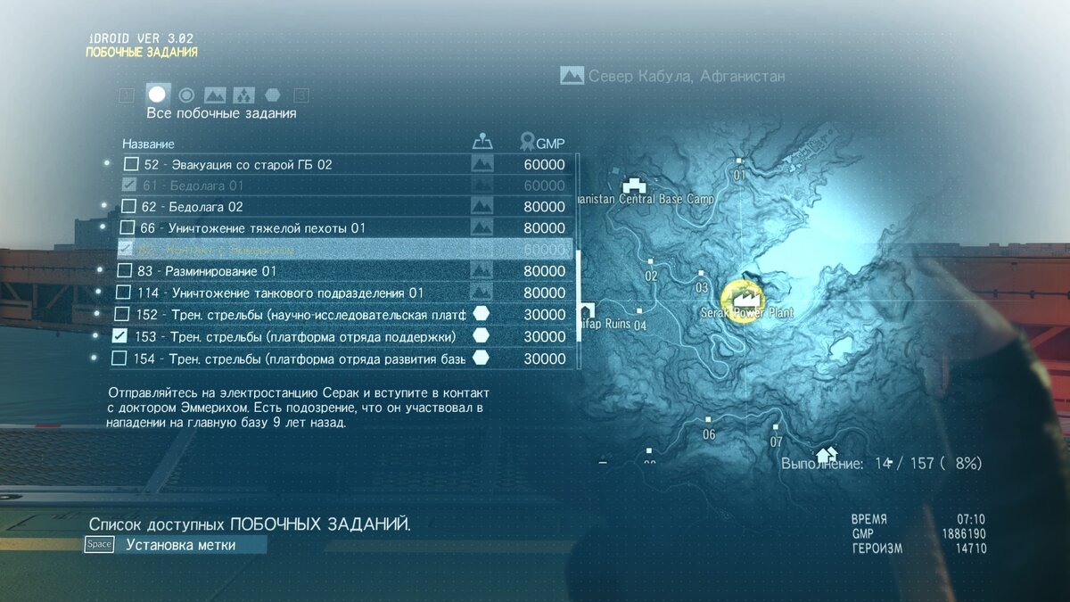 Это целый подвиг. Пройти все побочные миссии в MGS. Их всего около 150 штук и если вы это сделаете, то сможете написать в статусе ВК "Я прошёл все побочные задание в MGS V, кланяйтесь мне в ноги" Если вы ещё дополнительно пройдёте все побочные задания в Skyrim'e, то вам могут памятник поставить.