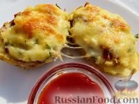 ПродуктыКартофель (большой) - 4 шт.Масло сливочное - 20 гКолбаски (охотничьи) - 2 шт.Молоко горячее - 4-6 ст.ложСыр твердый - 100 гСольПерец черный молотыйЗелень петрушки
