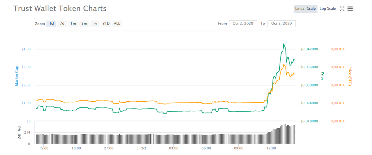 Хотел покупать TWT (Trust wallet), до начала его роста в самом начале августа. Почему бы и нет подумал я !? Проект ТОП уровня. Кошелёк, который установлен на телефоне у каждого второго криптана. Проект куплен Бинансом, а значит листинг на ТОП бирже обеспечен, это лишь вопрос времени.