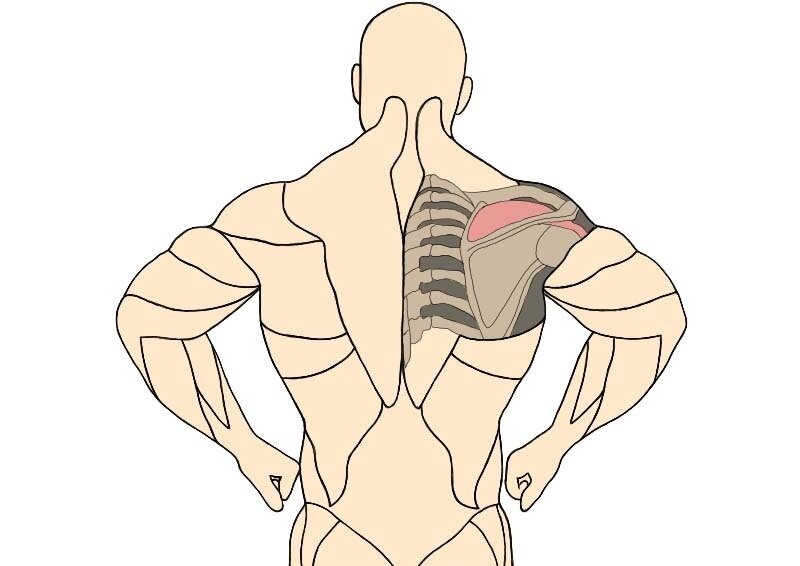 ПОДЛОПАТОЧНАЯ – единственная мышца из четырех мышц МАНЖЕТЫ, которая начинается от передней, обращенной к грудной клетке, стороны лопатки. Достаточно сильная плоская мышца, треугольной формы, которая сливается сухожилием с капсулой плечевого сустава, крепясь к малому бугорку плечевой кости. Ее основная функция – вращение руки в плечевом суставе внутрь, а также подтягивает поднятую вверх руку к голове и стабилизирует сустав.