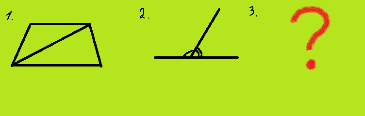 Поскольку в формулировке задания мы видим слова «какое» и «верно», значит, нам намекают, что верное здесь только одно. Начинаем все рисовать. В пункте 1 надо нарисовать трапецию и ее диагональ. Очевидно, что получившиеся треугольники не равны. Это неверное. В пункте 2 рисуем смежные углы. Ох… тут скользкий момент. В одном-единственном случае они все-таки равны. Но как правило дети сразу рисуют неравные, и очевидно, что утверждение неверно. Если же кто-то все же рисует мне равные, прошу обратить внимание на слово «всегда» и подчеркиваю, что одного примера недостаточно, если написано «всегда». В пункте 3 рисуночки уже не помогают – тут либо ты знаешь формулу, либо нет. Но мы-то уже выяснили, что первые два утверждения не подходят. Значит верное третье!