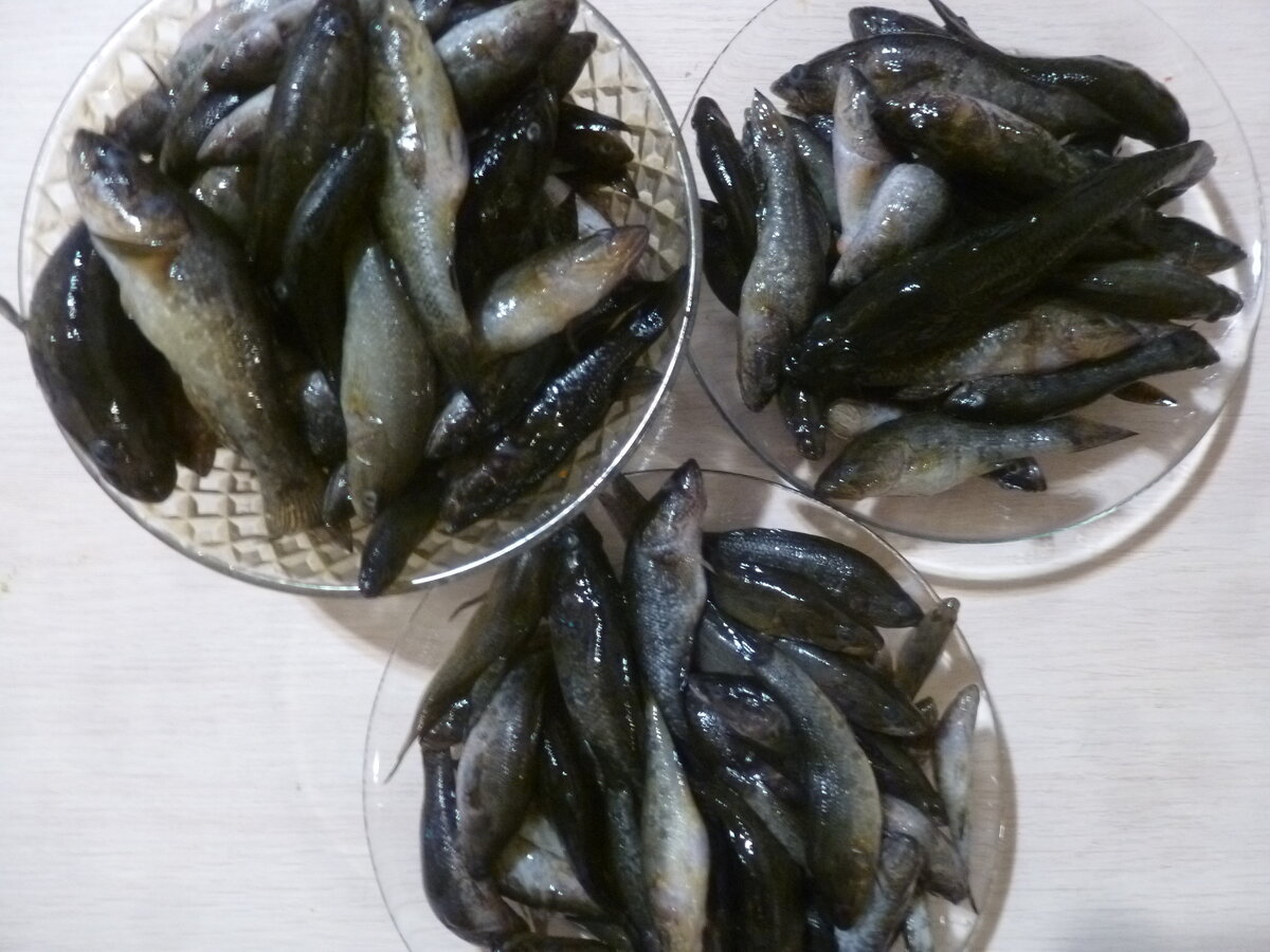 Забегая вперед сообщу, что, после этой эпопеи, супруга с большой примесью запрещенных слов, говорит, что, если поймает, то выкинет бычка обратно... А, в случае, повторной поимки и удочку туда швырнет...))) Ну, хоть какие-то плюсы... Серьезно, я не мог утащить жену с водоема до темноты. Несколько раз за это лето... У нее - клевало! Т.к. после ловли женой, этим летом, бычков, оказалось, что нормальную рыбу некуда положить. Морозильник забит... бычкам! Решили сделать консервы. Вкус этих рыбных консервов (в томате) не меняется уже десятилетиями, но мы вам предлагаем рецепт вкусной и, будем надеяться, здоровой пищи. Из этих рыб, бычков. Скажу сразу, для нас нет разницы - бычок, ротан или еще кто-то. Все они одинаковые... Рыбы оказалось довольно много, т.к. этим летом было несколько рыбалок, где на удочку натаскали их несколько сотен... И на безымянном, и на Бездонном. И еще где-то. Уже и не помним. Помню, что невозможно было утащить жену с водоема. У нее же тогда - клевало... Достали рыбу, разморозили. Получилось три глубоких миски.