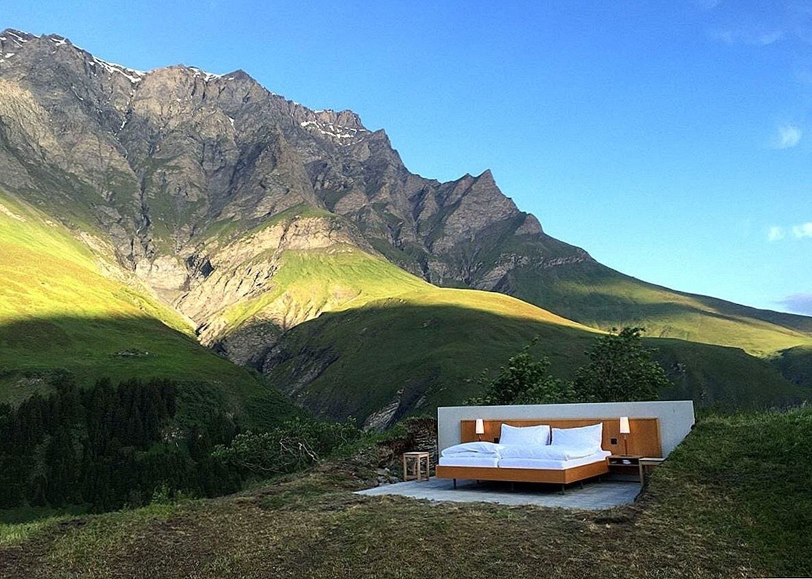 Достаточно интересный гостиничный номер недавно открылся в Альпах, Швейцария. Он получил название Null Stern, что в переводе с немецкого языка означает “ноль звезд”. И название полностью соответствует оформлению этого номера.