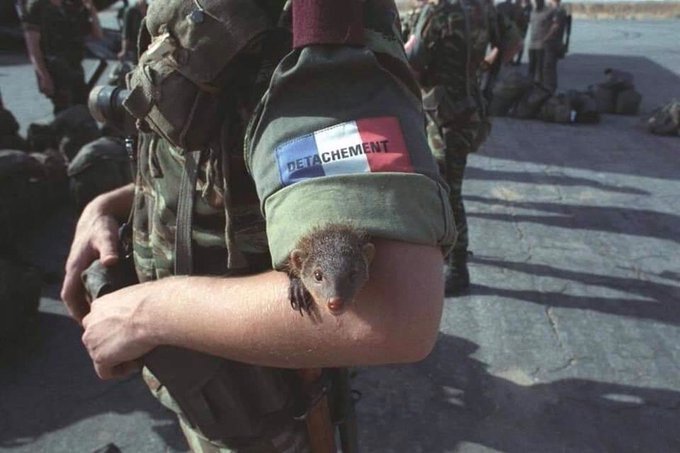 Французский военнослужащий из 8-го парашютного полка морской пехоты с тактическим мангустом. Операция «Манта», Чад, август 1983 года.